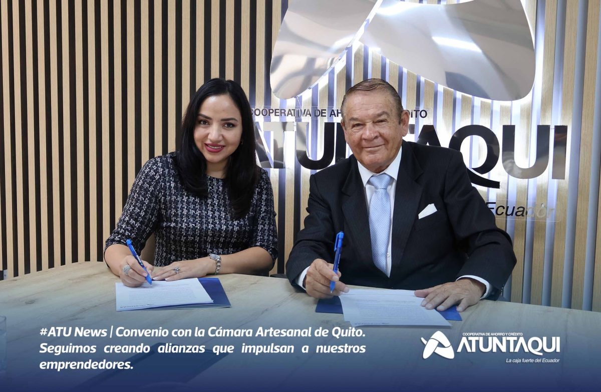 La Cooperativa de Ahorro y Crédito Atuntaqui continúa impulsando iniciativas que promueven el crecimiento económico y el fortalecimiento del sector productivo. En esta ocasión, se llevó a cabo la firma de un importante convenio con la Cámara Artesanal de Quito, en la Agencia La Carolina.