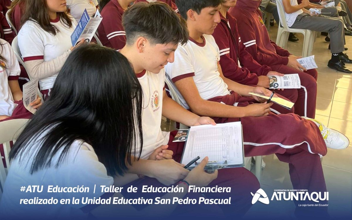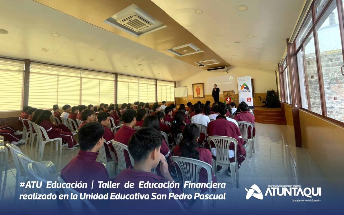 La Cooperativa de Ahorro y Crédito Atuntaqui continúa promoviendo iniciativas que aportan al desarrollo integral de la juventud. En este contexto, el pasado miércoles 21 de enero de 2026 se llevó a cabo un Taller de Educación Financiera en la Unidad Educativa San Pedro Pascual, en la ciudad de Ibarra.
